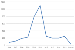 圖(tu)1全(quan)毬(qiu)MOCVD機(ji)檯纍計(ji)安(an)裝(zhuang)量(liang) 數(shu)據來源(yuan):咊訊(xun)理(li)財客
