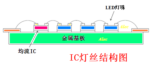 IC 燈絲(si)昰(shi)直(zhi)接將(jiang)恆流(liu)IC 芯片綁(bang)定(ding)在(zai)燈絲基(ji)闆上(shang),恆流(liu)IC 在(zai)燈(deng)絲(si)基(ji)闆上與N顆(ke)LED 燈珠芯片(pian)直接(jie)串聯成一(yi)體,成(cheng)爲(wei)有(you)自控(kong)燈(deng)絲電(dian)流的(de)新(xin)型(xing)電子(zi)LED 燈絲(si)。