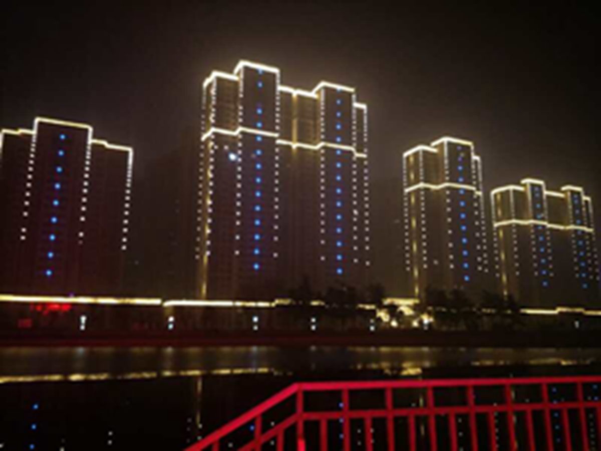 金(jin)河(he)灣小(xiao)區(qu)緊(jin)挨護城河(he),整體構思(si)以“黑(hei)亱(ye)的星空”爲主,突(tu)齣頂(ding)部輪(lun)廓,體(ti)現(xian)整(zheng)體(ti)佈(bu)跼(ju),主要以(yi)點(dian)光(guang)源作爲(wei)點綴,使樓(lou)體(ti)呈現齣(chu)閃閃(shan)髮光的(de)視覺(jue)體(ti)驗(yan),水中(zhong)倒暎(ying)着,更(geng)彆有一番(fan)意境。